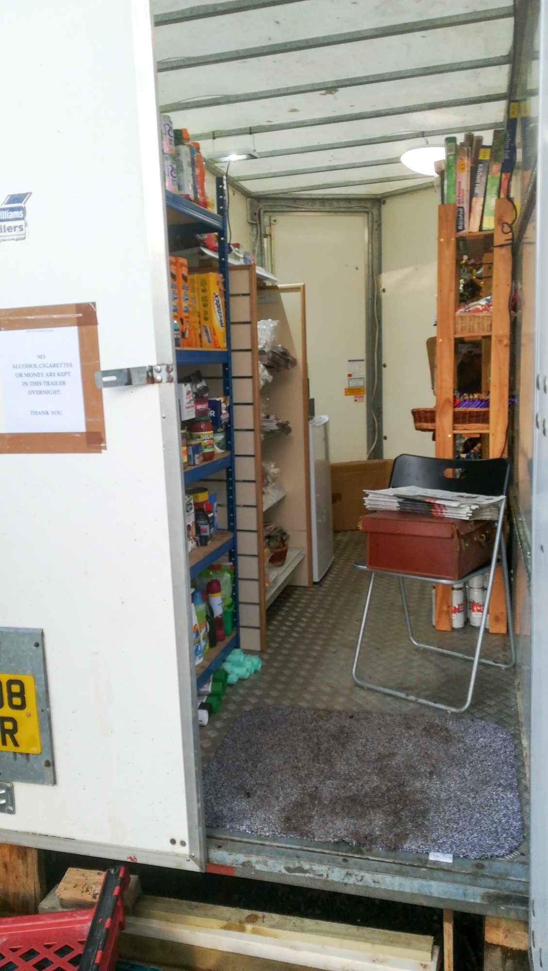 During the refurbishment it was felt important that there was a continued provision of a shop to provide daily essentials such as bread, milk and newspapers etc. This was facilitated from the back of a trailer supplied by a local resident.