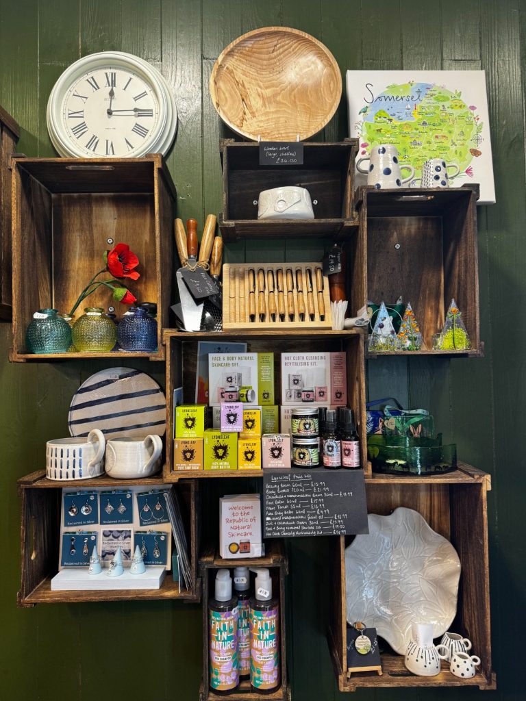 As well as selling local crafts we prioritise offering sustainable, organic products sourced from Cheddar Valley farmers and local suppliers.